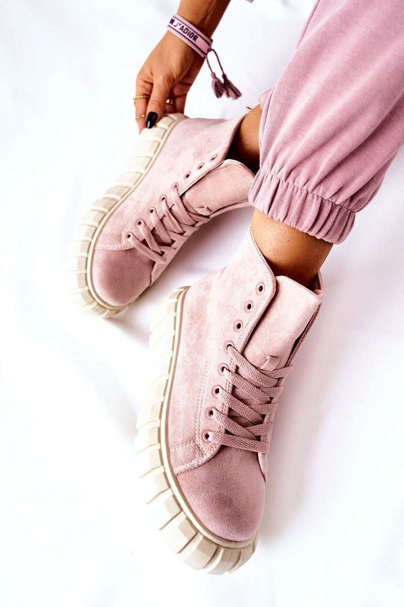 Замшеві кросівки на високій платформі рожевого кольору Meniphise