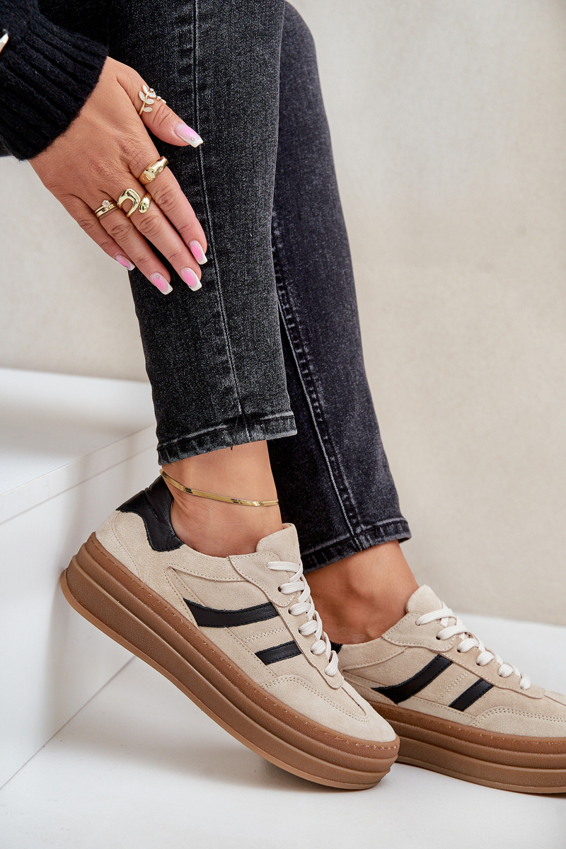 Замшеві кросівки на платформі бежеві Zazoo N1176