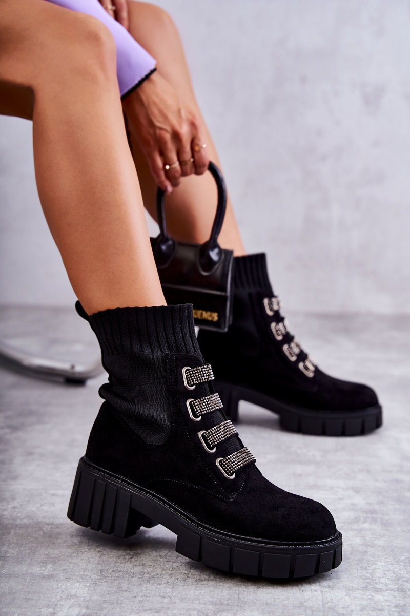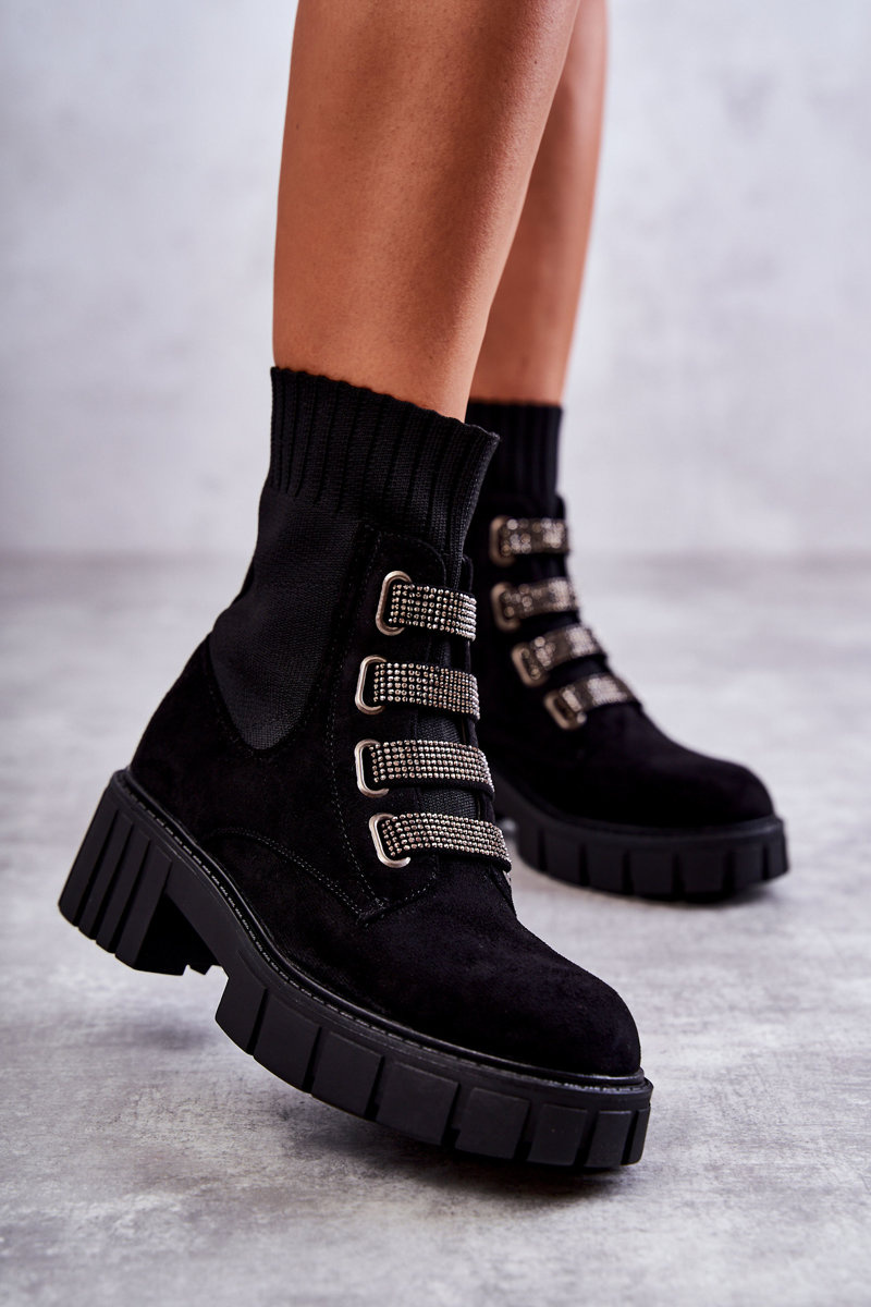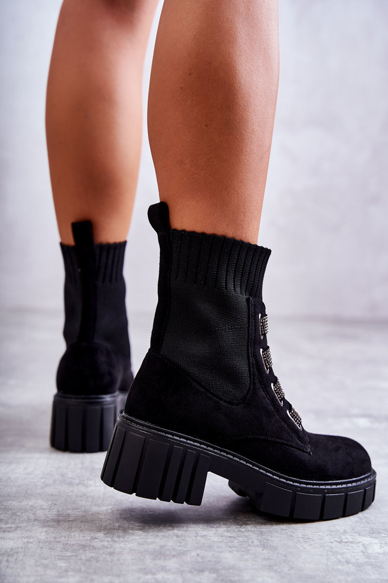 Модні чоботи - робочі підкорили серця багатьох жінок! Дана модель виконана з поєднання приємної на дотик еко замші та текстилю. Черевики сліпони, з ніжним рантом у верхній частині. Дана модель утеплена ковдрою лише на висоті стопи. Жорсткий каблук. Комплект на масивній платформі з плоским каблуком. При виборі розміру скористайтеся таблицею розмірів.