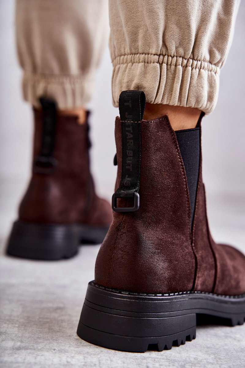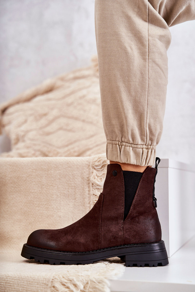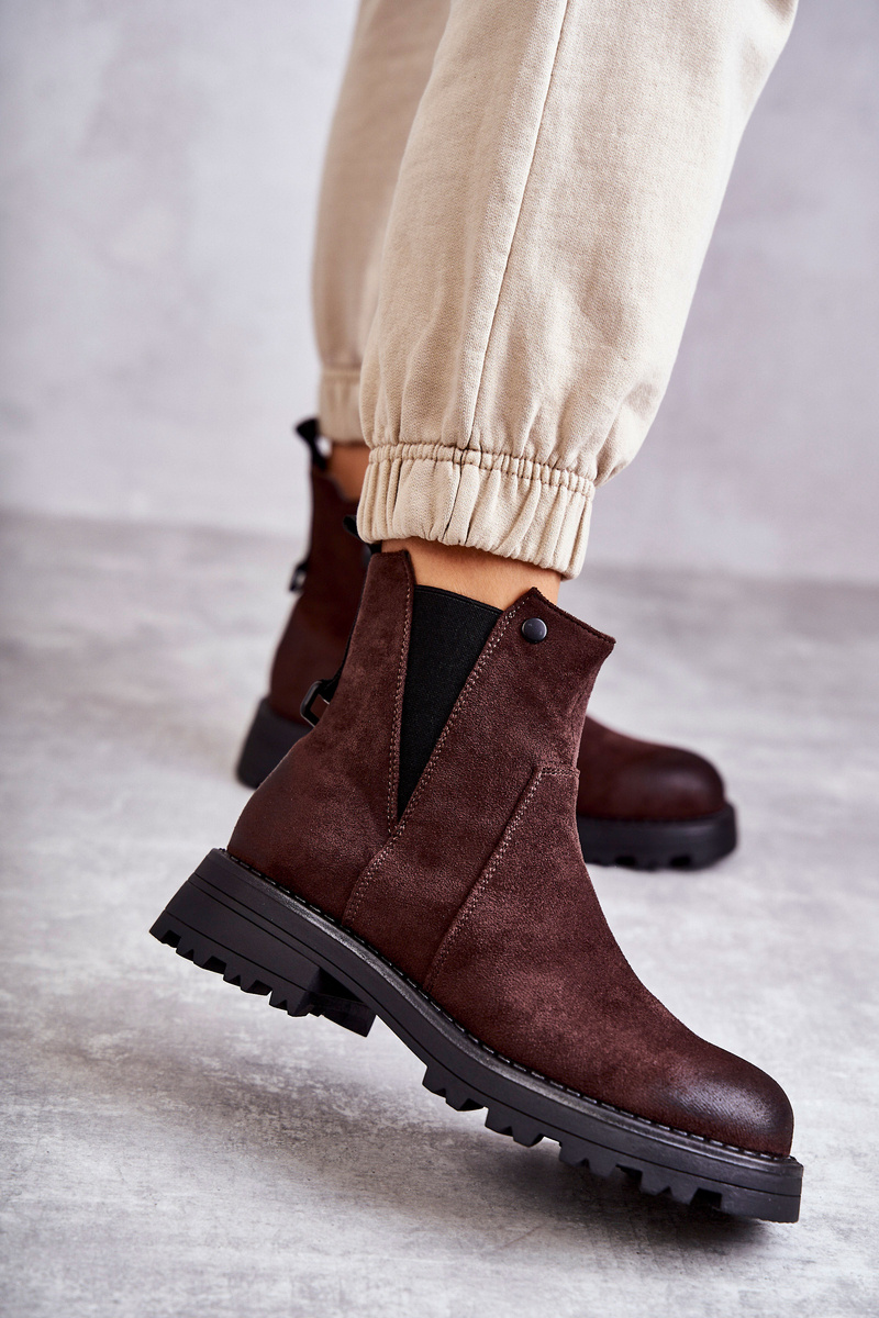 Замшеві теплі чоботи на плоскому каблуці Коричневі Salome
