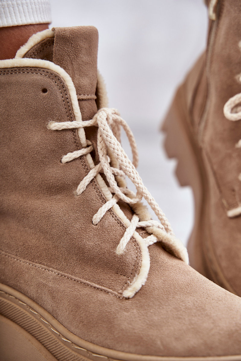 Замшеві теплі чоботи на шнурівці Бежеві Elisabeth
