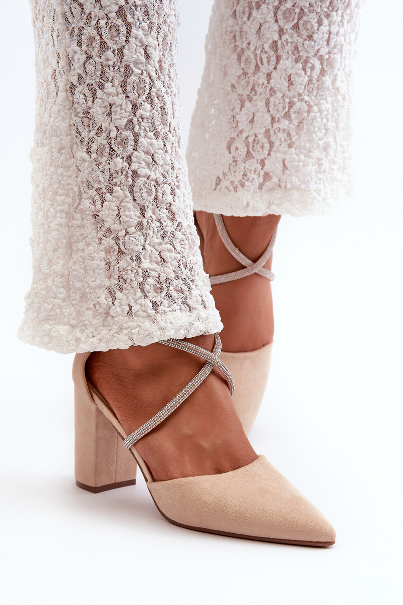 Замшеві туфлі зі стразами бежевого кольору Lagra