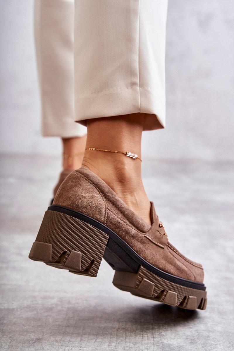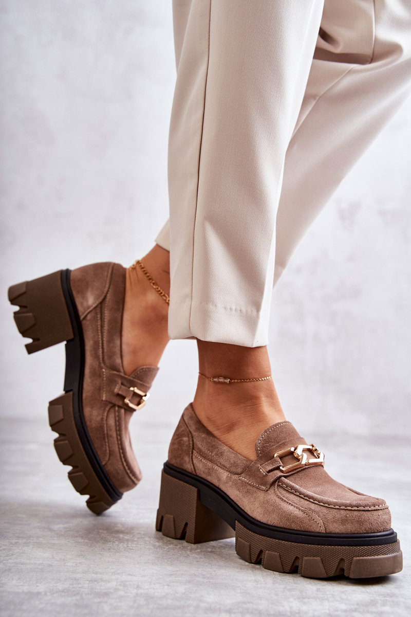 Унікальне жіноче взуття порадує вас своїм зовнішнім виглядом і зручністю під час використання. Виготовлений з натуральної замші. Спереду мають прикрасу ланцюжок. Крім того, п'ятка посилена. Туфлі кріпляться на масивній платформі і плоскому каблуці з гумового матеріалу. Крім того, вони не ковзають. Надзвичайно зручна модель з устілкою з натуральної шкіри. При виборі розміру скористайтеся таблицею розмірів.