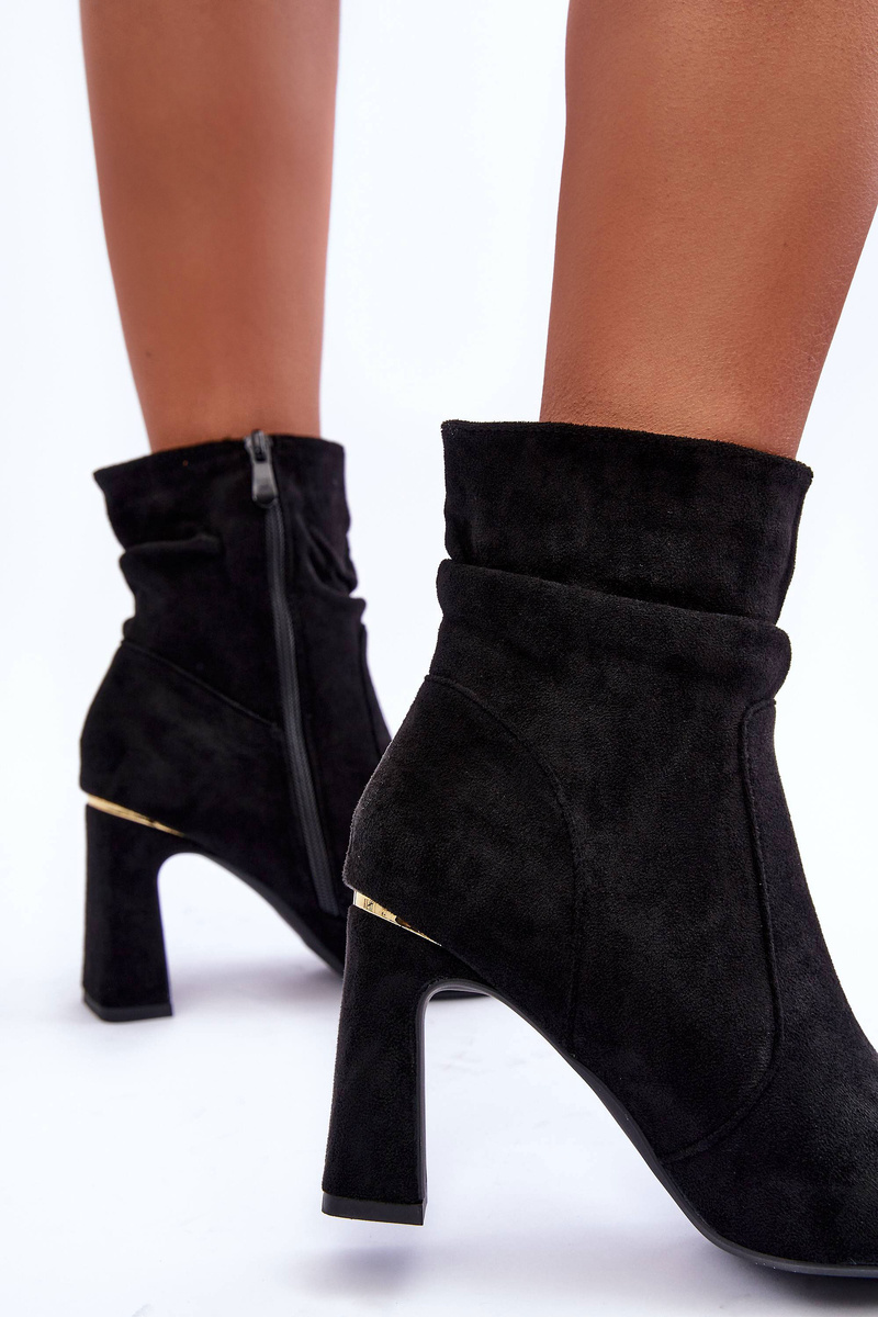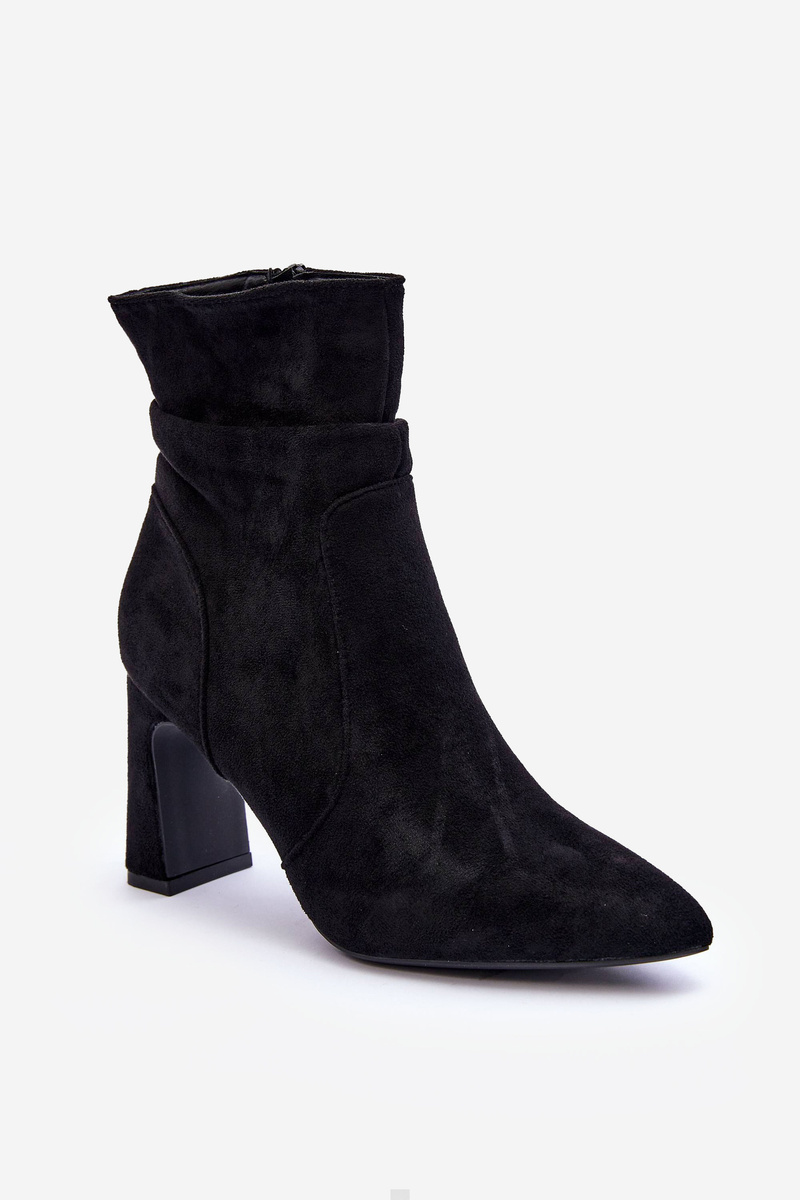 Ці елегантні черевики виготовлені з приємної на дотик еко-замші. Верх плісирований і застібається на блискавку. Дана модель тримається на шпильці. Пальці ніг загострені. Крім того, взуття має посилений носок. При виборі розміру орієнтуйтеся на таблицю розмірів.