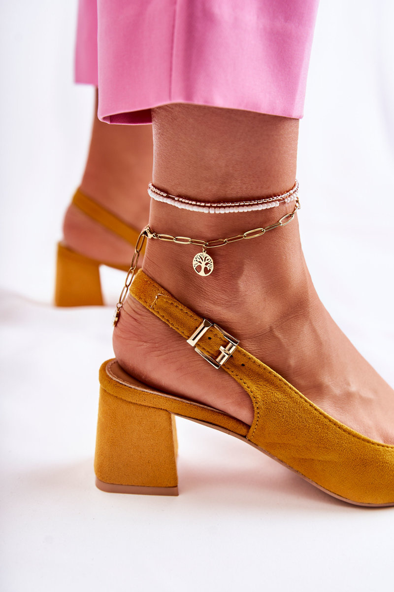 Чудові човники з відкритою п’ятою та гострим носком. Виготовлена з приємної на дотик еко замші. Мають регульований ремінь, який застібається на пряжку. Встановлюється на каблук у вигляді колодки, що забезпечить стабільність на кожному кроці. М'яка устілка з екошкіри - гарантія комфорту під час використання. Такі човники ідеально підійдуть для ділових зустрічей або сімейних свят. При виборі розміру скористайтеся таблицею розмірів