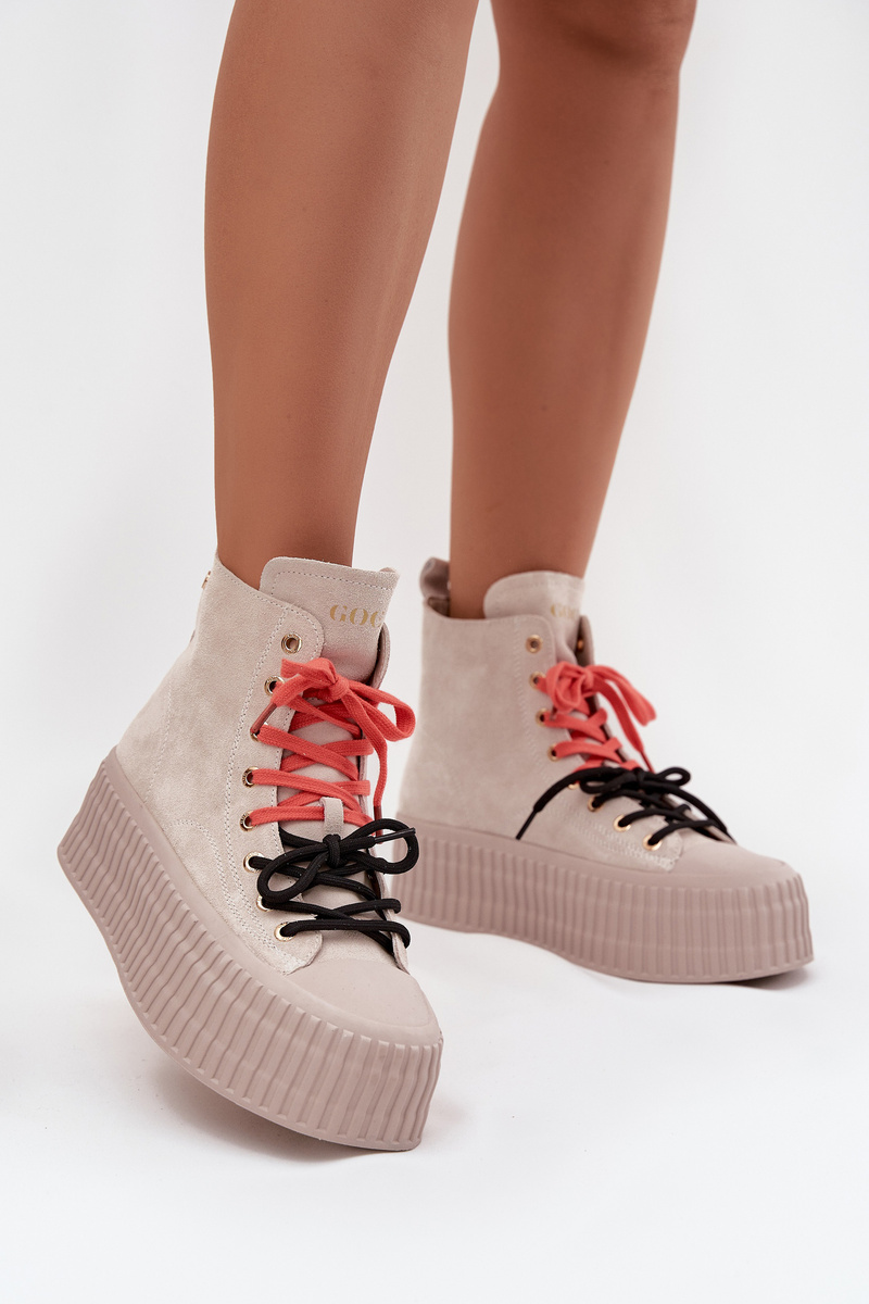 Замшеві утеплені жіночі кросівки на масивній платформі GOE SS2N4047 бежеві