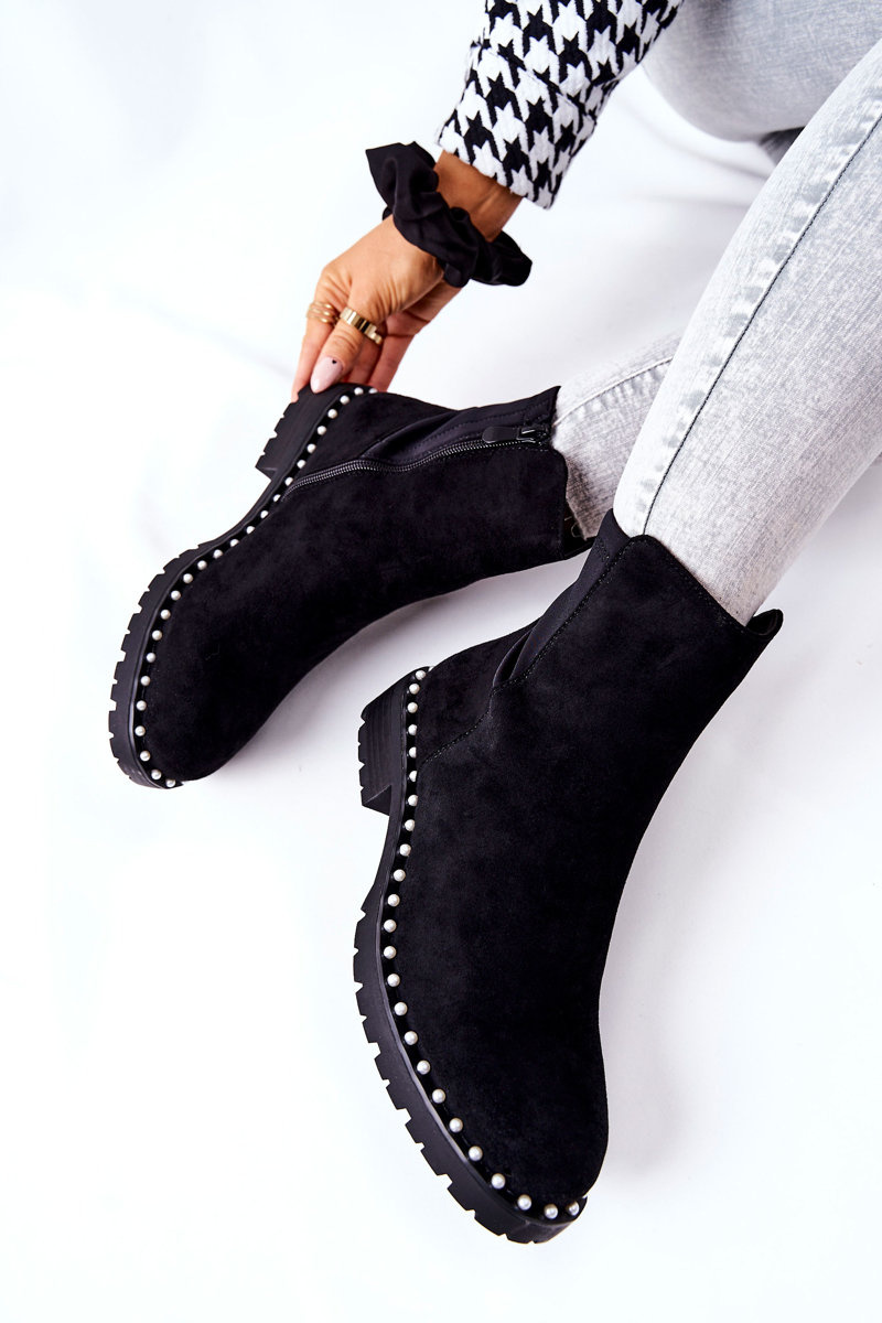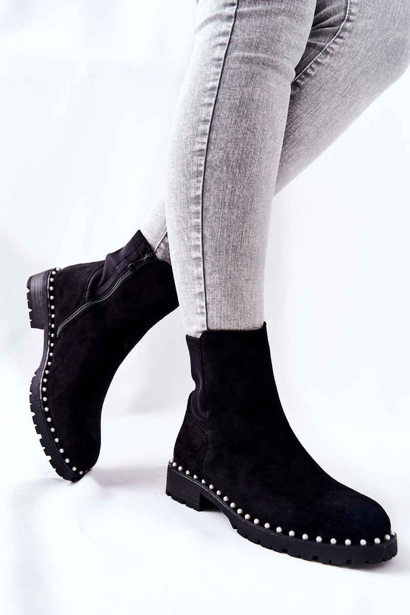 Красиві чобітки з еко замші. Всередині вони частково утеплені. На підошві чарівні перлини. Плоский каблук забезпечує стабільність на кожному кроці. Перегляньте всю нашу пропозицію чобіт! Для вибору розміру зверніться до таблиці розмірів