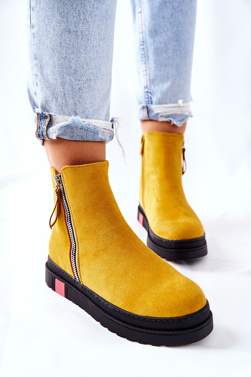 Замшеві черевики на платформі на шнурівці жовті Nessa