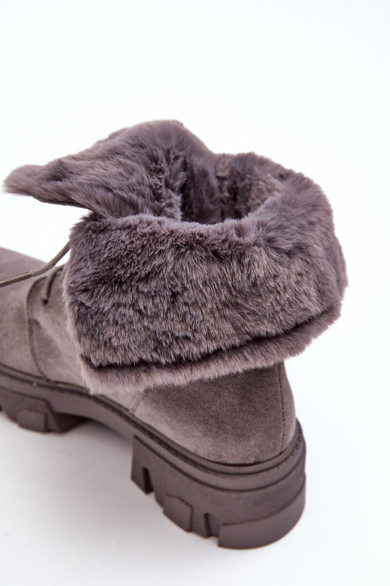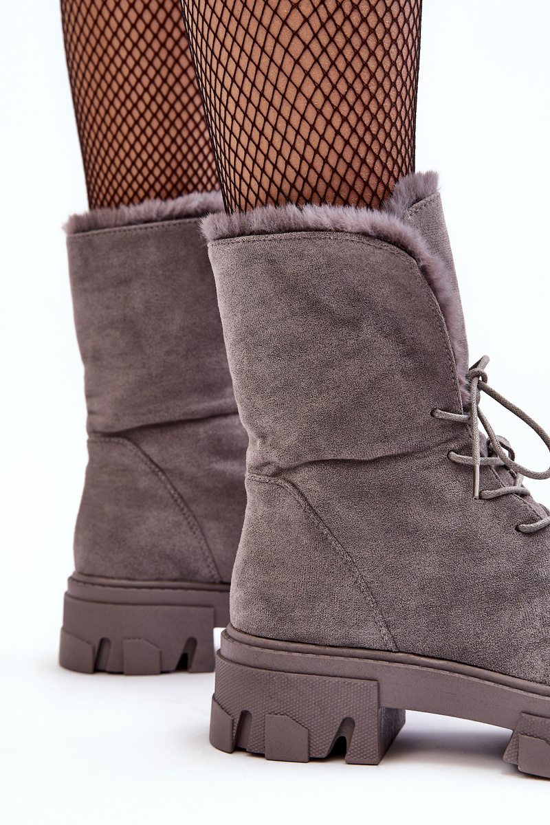 Замшеві черевики на шнурівці з хутром сірого кольору Frendo