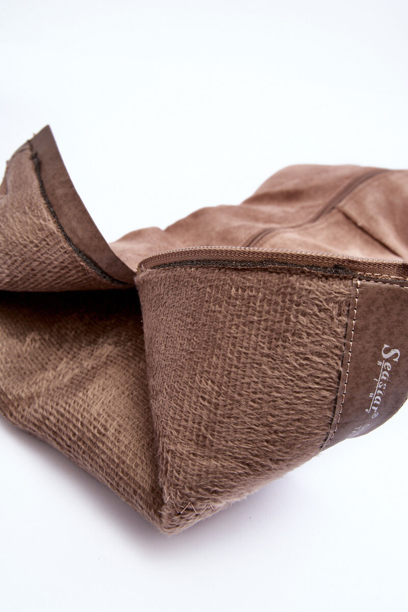 Замшеві чоботи вище коліна на підборах бежеві Kilrenita