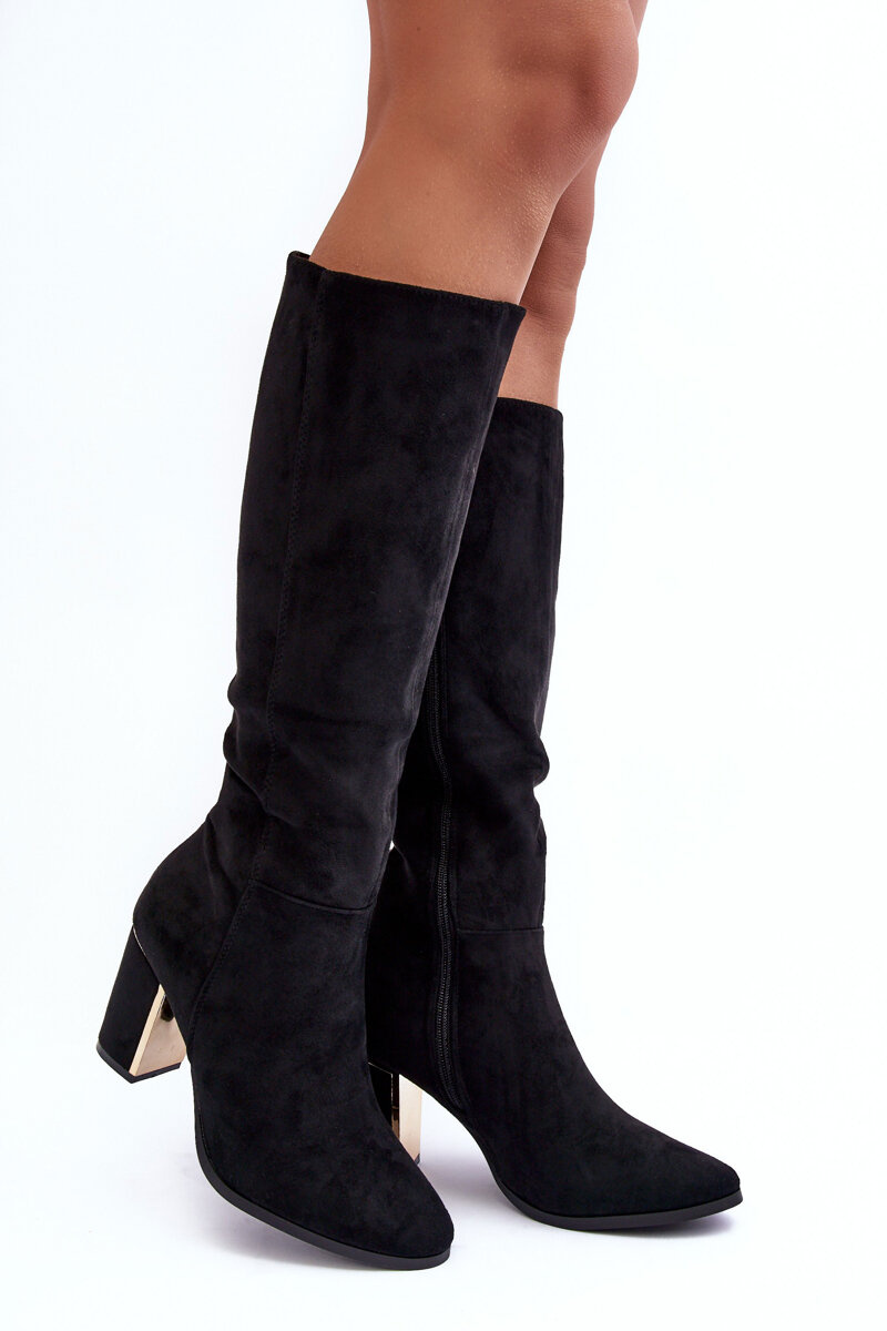 Замшеві чоботи вище коліна на підборах Kilrenita Black