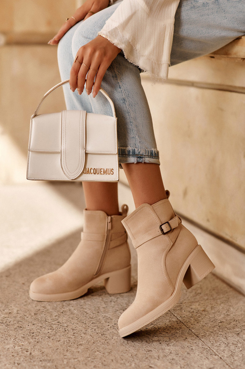 Черевики класичні з еко замші. Встановіть на каблук. Внутрішня частина обшита підкладкою. Збоку на верху ремінь з пряжкою. Модний стиль робить їх придатними для багатьох варіантів укладок. Носок округлий. Взуття також має жорсткий носок. З цими черевиками осінні дні вже не будуть такими страшними! При виборі розміру орієнтуйтеся на таблицю розмірів.