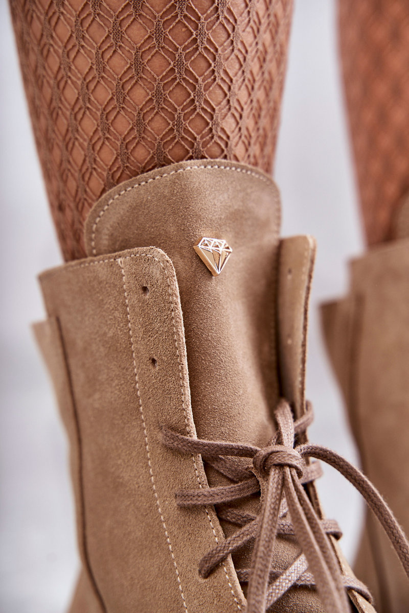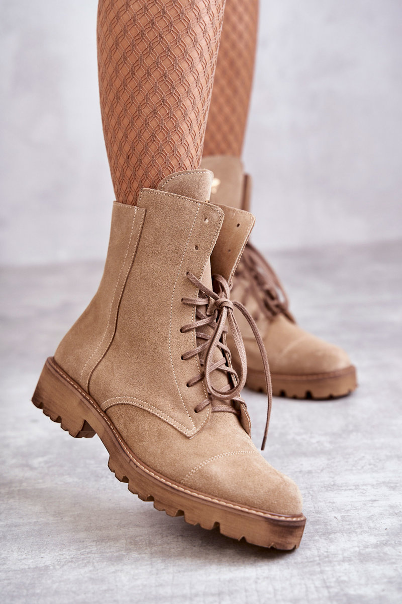 Класичні жіночі черевики з натуральної шкіри найвищої якості. Модель з відстрочкою по верху. Ззаду є блискавка, яка полегшує взування, а спереду є шнурівка, яка дозволяє правильно відрегулювати взуття. Чоботи тримаються на плоскому каблуці з масивним протектором. Зручність і комфорт під час використання гарантовані! При виборі розміру дотримуйтеся таблиці розмірів.