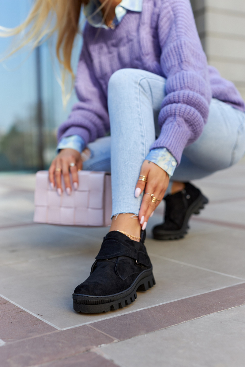 Трапери на товстій підошві з високим протектором. Верх виготовлений з еко замші, збоку застібається на блискавку і додаткову липучку. Взуття має круглий носок. Ззаду на верху є ботівстрап, тобто петля, яка полегшує одягання та знімання взуття. Підборник посилений. Ці туристичні черевики сучасного крою ідеально підходять для весняних стилізацій! При виборі розміру скористайтеся таблицею розмірів.