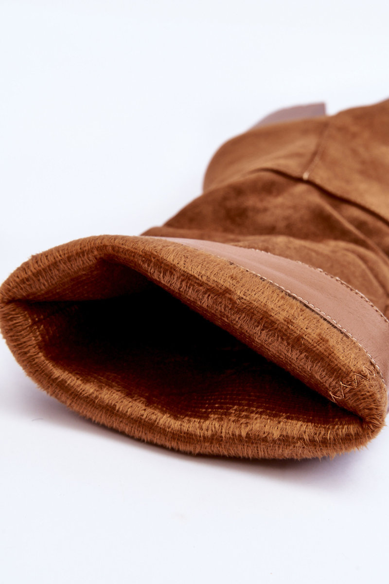 Замшеві чоботи на масивному каблуці коричневого кольору Virdana