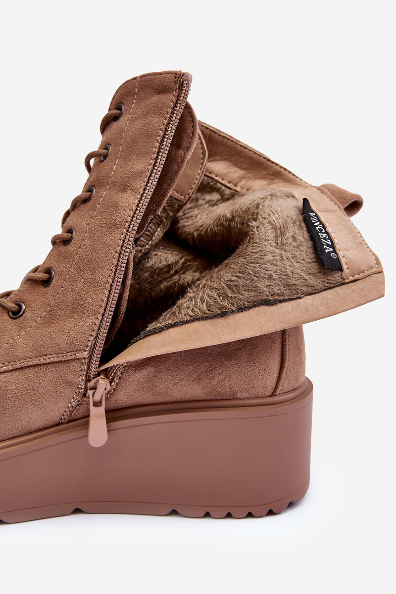 Черевики виготовлені з еко-замші. Комплект на платформі і танкетці. Модель застібається на блискавку збоку, а також має шнурівку. Зсередини утеплена взуттєвою ковдрою. Пальці закруглені, натоптиш жорсткий. Верхня частина збоку має декоративний елемент. Ця модель точно підійде в багатьох стилях! Вибираючи розмір, зверніться до таблиці розмірів.