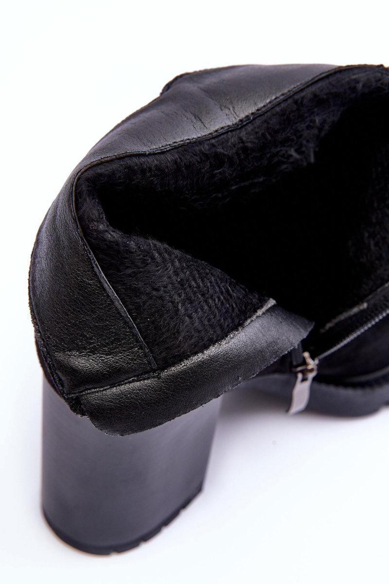 Класичні черевики виготовлені з еко замші. Встановлюється на каблук у вигляді масивного стовпа. Застібається на блискавку з внутрішньої сторони. Верх прикрашений ремінцями з пряжкою. Зсередини утеплена взуттєвою ковдрою. Носок цього взуття посилений. Вибираючи розмір, орієнтуйтеся на таблицю розмірів.