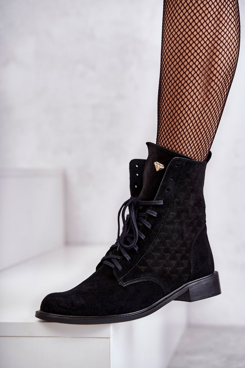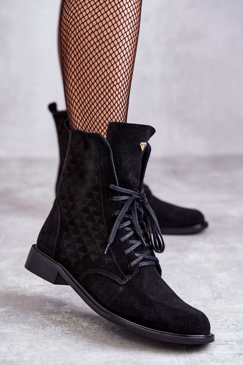 Замшеві чоботи на шнурівці Nicole 2751 Black