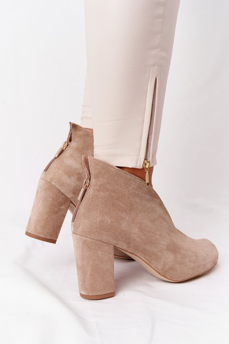 Замшеві чоботи на шпильці з вирізом Exquisite 1243 Beige