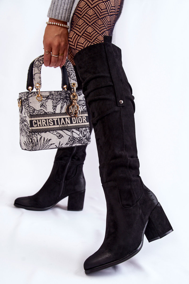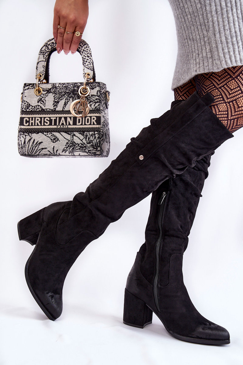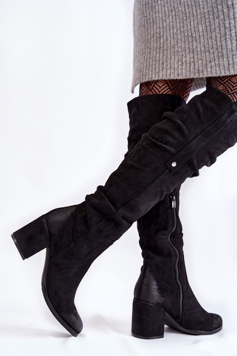 Сенсаційні жіночі черевики виготовлені з високоякісної еко-замші з увагою до деталей. Ця модель кріпилася на невисокому каблуці у вигляді стовпчика. Чоботи до коліна прикрашені ніжним воланом і одинарною шпилькою збоку верху. Застібається на блискавку і сліп. Крім того, п'ятка посилена. Черевики утеплені ніжним хутром. При виборі розміру скористайтеся таблицею розмірів.