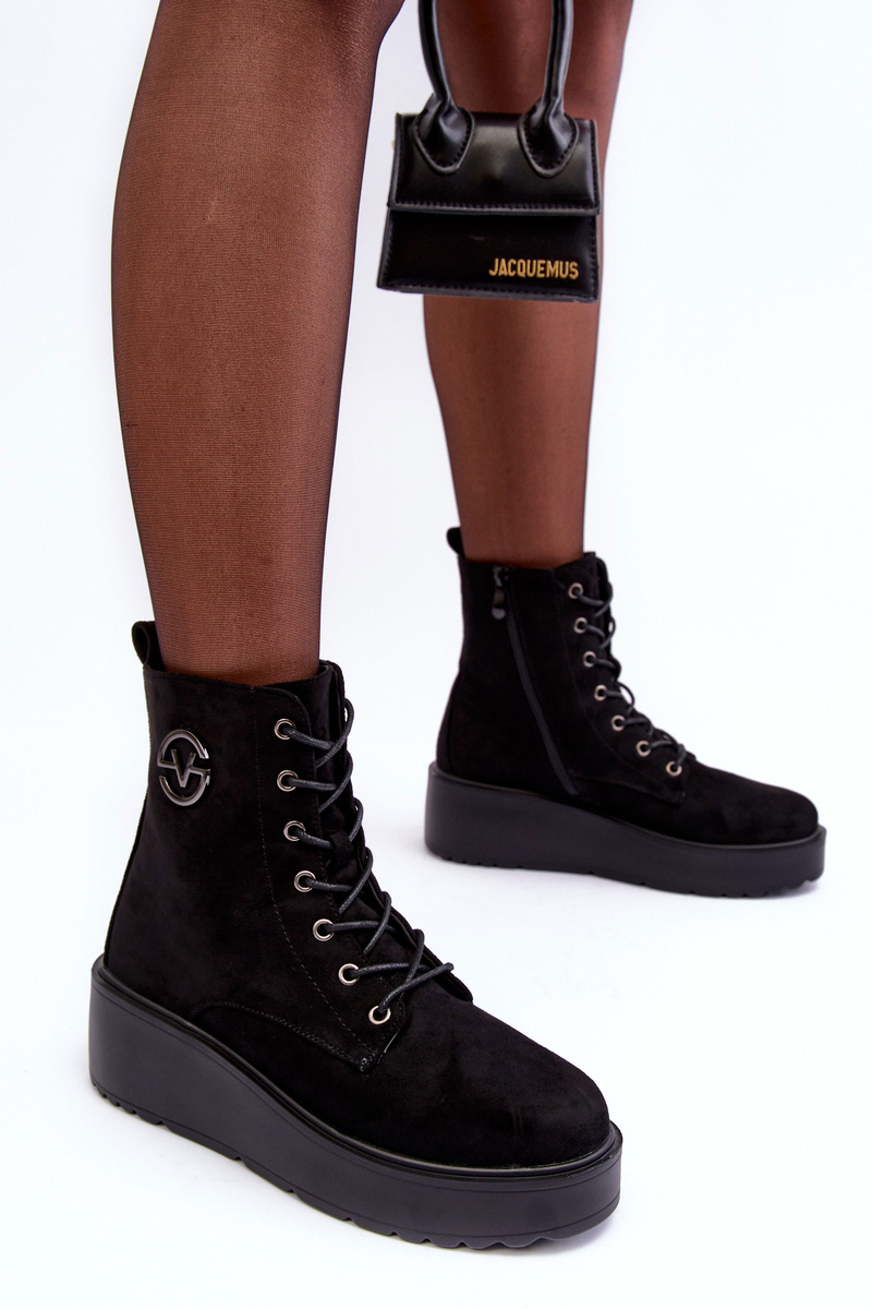 Замшеві чоботи Workery на масивній платформі, танкетці, чорні Lavica