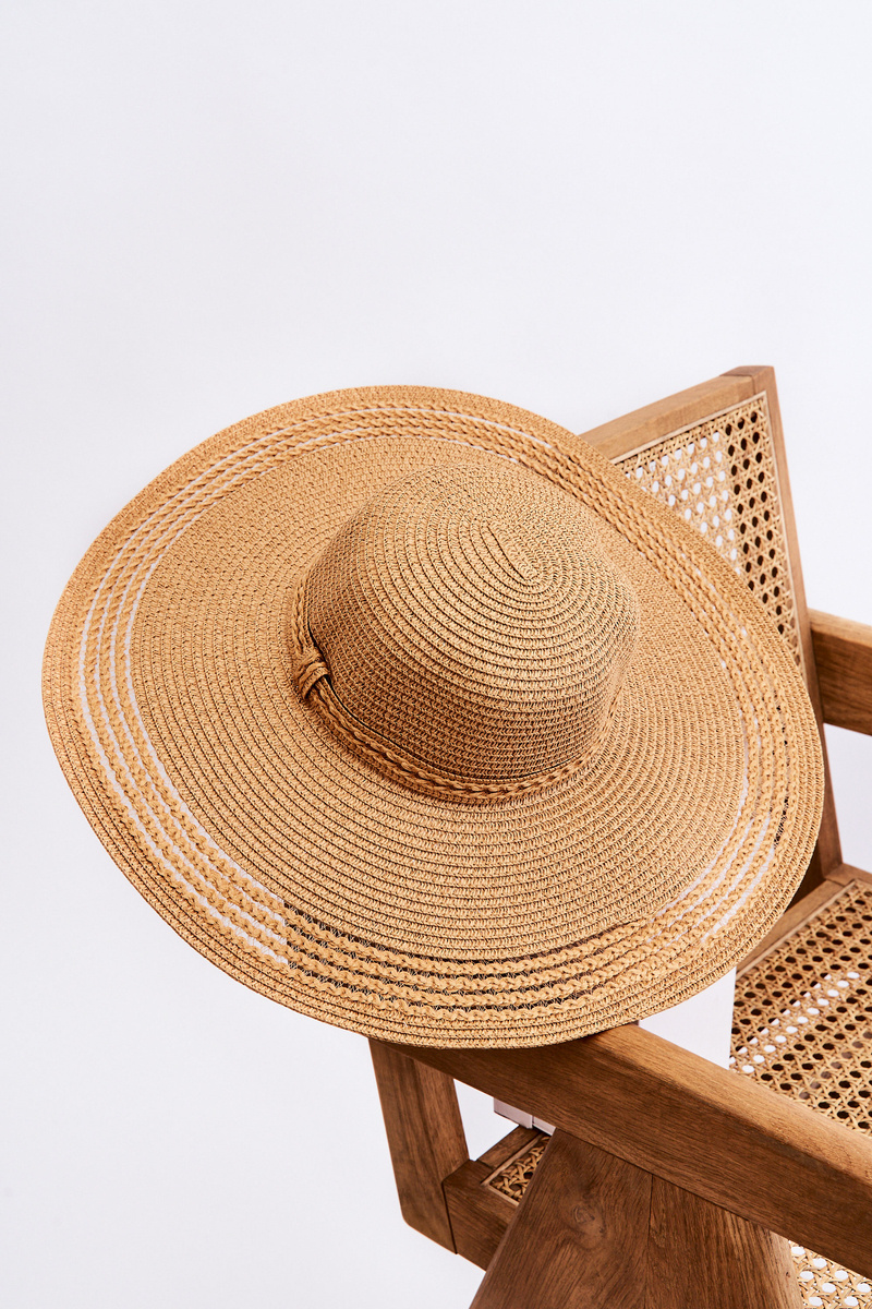 Класичний простий жіночий капелюшок виготовлений зі 100% паперу. Кругове має напівпрозорий малюнок. На прикрасі є смужка під колір шапки. Крім того, всередині є стрічка, яка дозволяє підігнати капелюх по окружності голови.