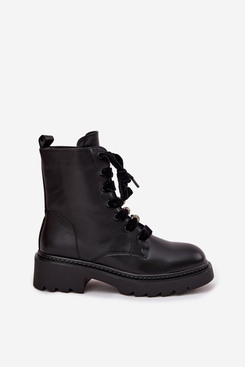 Зимові жіночі ботінки з декоративним шнурівкою чорні Elindra