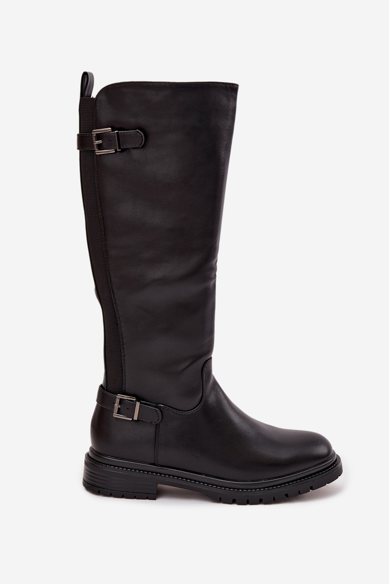 Зимові жіночі чоботи на плоскому каблуці чорні Sarelle