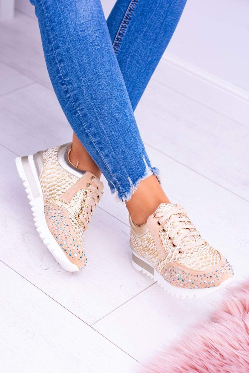 Золоті жіночі спортивні туфлі з паєтками Lu Boo Infinitiale