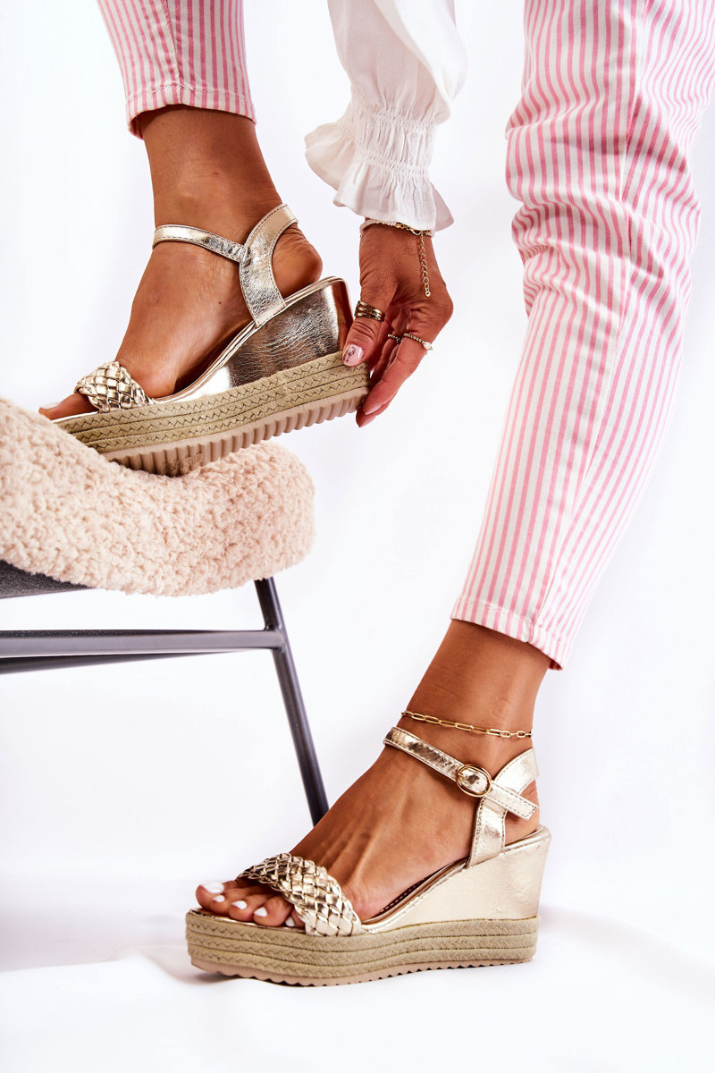 Золоті шкіряні босоніжки на танкетці Gabriela