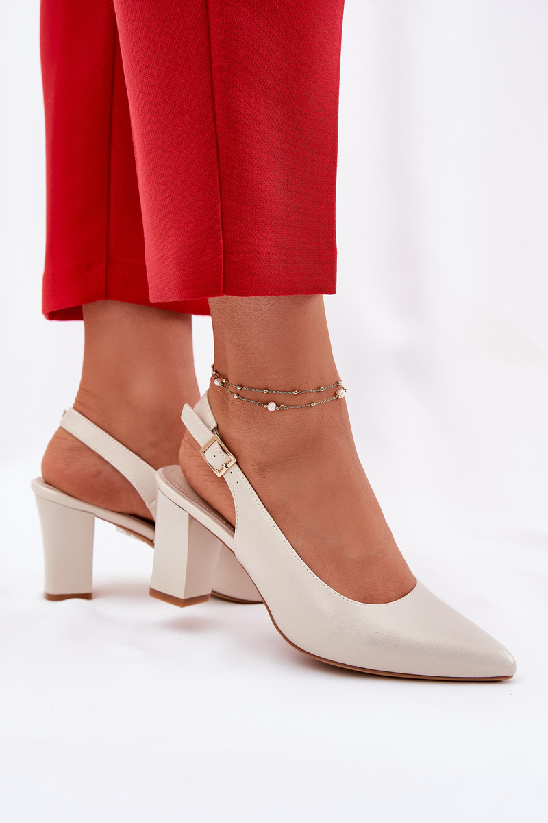 Зручні туфлі, встановлені на стабільному блоці підбора. Вони мають застібку навколо щиколотки з регульованим ремінцем і пряжкою. Модель з гострим носком і відкритою п'ятою. Це взуття виготовлене з еко-шкіри, а устілка з натуральної шкіри. Ця модель повинна бути у вашій шафі! Будь ласка, зверніться до розмірної сітки при виборі розміру.