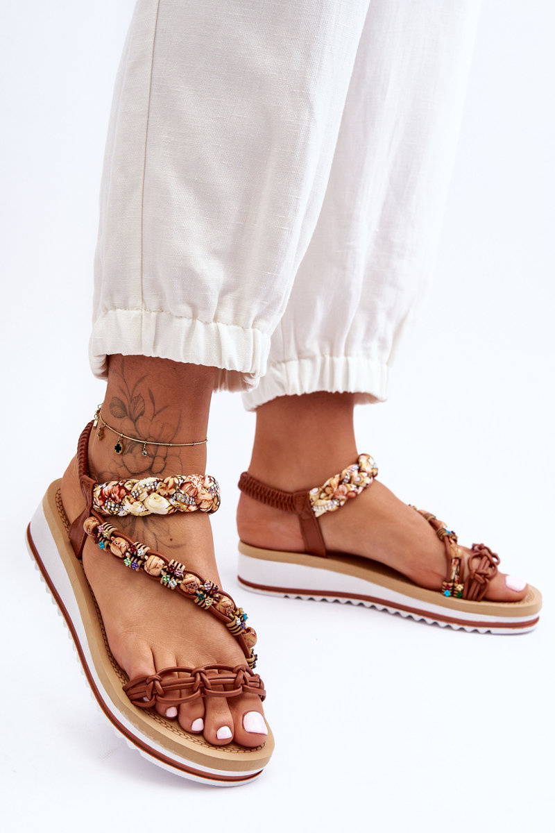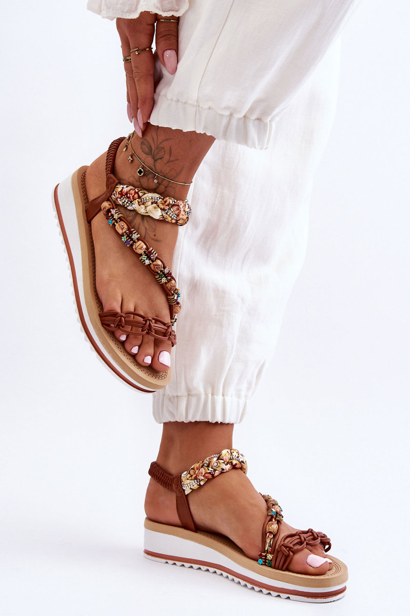 Модні жіночі босоніжки кріпляться на танкетці і платформі. Дана модель виконана з поєднання еко шкіри та тканини. Босоніжки мають орнаменти у вигляді страз і намистин на ремінцях. М'яка поролонова устілка забезпечить комфортне використання взуття. Босоніжки назуті. Ця модель повинна бути у вашому гардеробі! Обираючи розмір, орієнтуйтеся на таблицю розмірів.