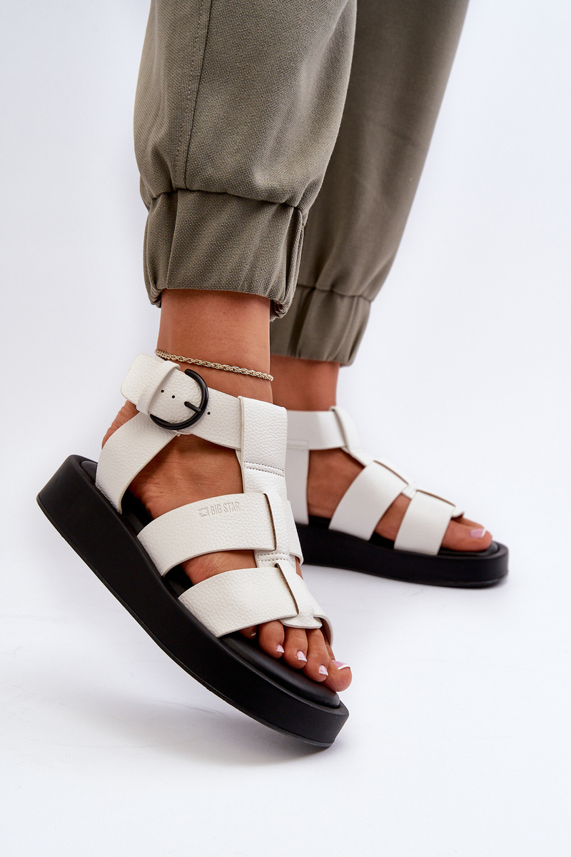 Жіночі босоніжки Big Star - це чудове поєднання стилю та комфорту. Встановлені на платформу, вони забезпечують додаткову висоту, гарантуючи стабільність під час ходьби. Застібаються на регульовану пряжку, їх можна легко пристосувати до стопи. М'яка устілка гарантує, що кожен крок буде приємним, а ноги почуватимуться вільно та комфортно навіть під час довгих прогулянок або днів, насичених справами. Такі босоніжки - це не тільки стильне доповнення літнього гардеробу, а й практичне взуття, що забезпечує комфорт протягом усього дня.