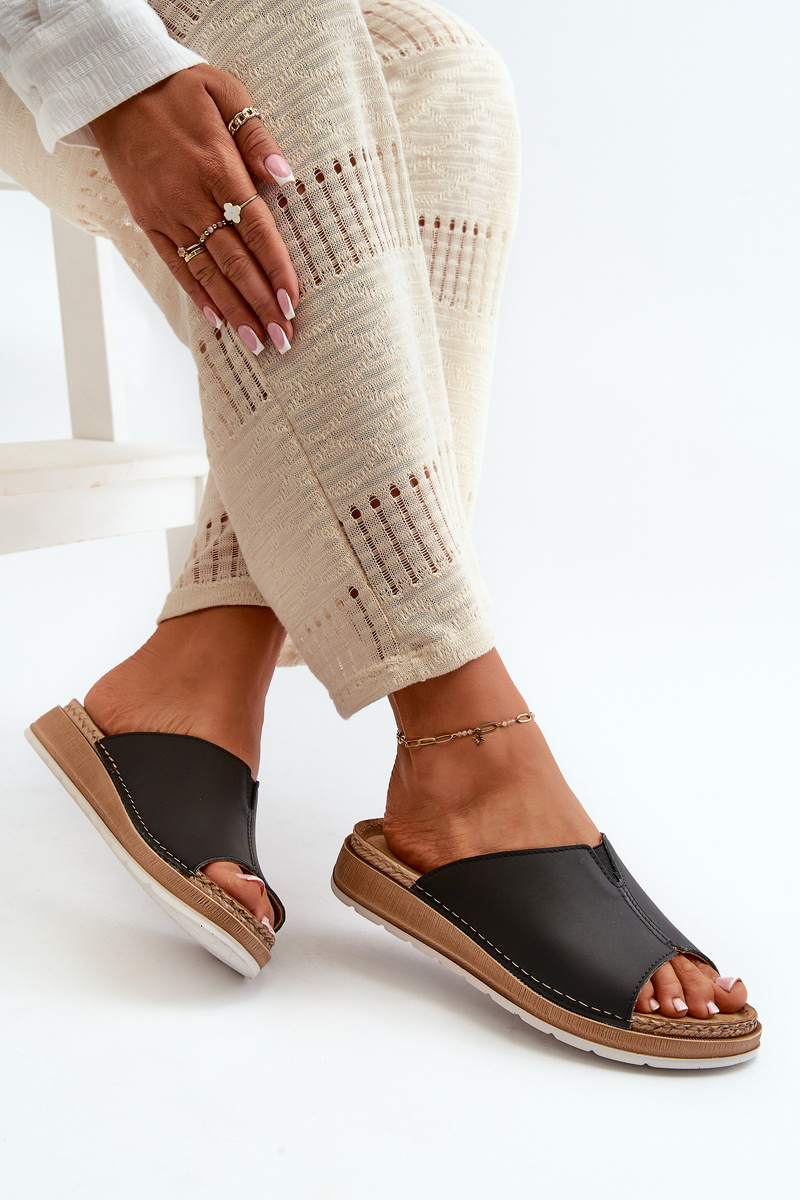 Зручні жіночі шльопанці з еко шкіри Inblu GS0003I1 Чорні