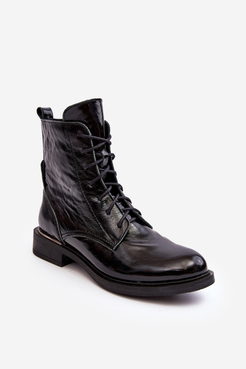 Зручні лаковані утеплені черевики чорні Lemar Revin