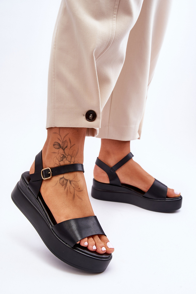 Зручні шкіряні босоніжки на танкетці Tifena чорного кольору