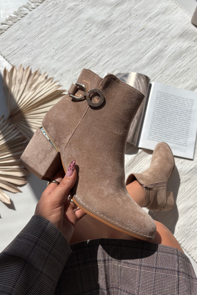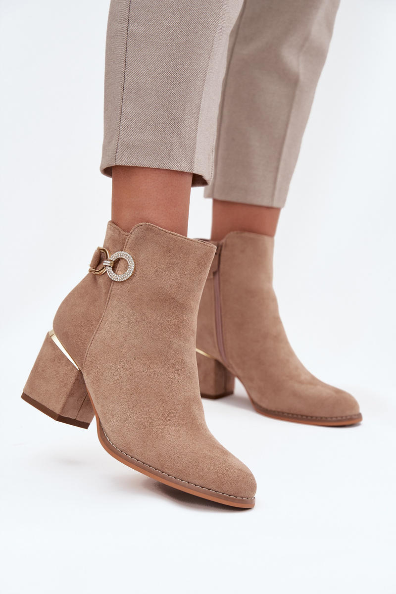 Зуття жіночі утеплені з золотими деталями на підборах бежеві Dorisse
