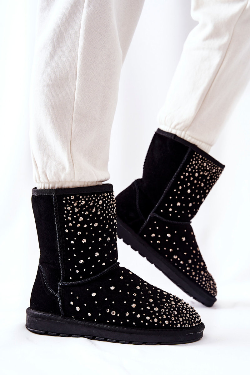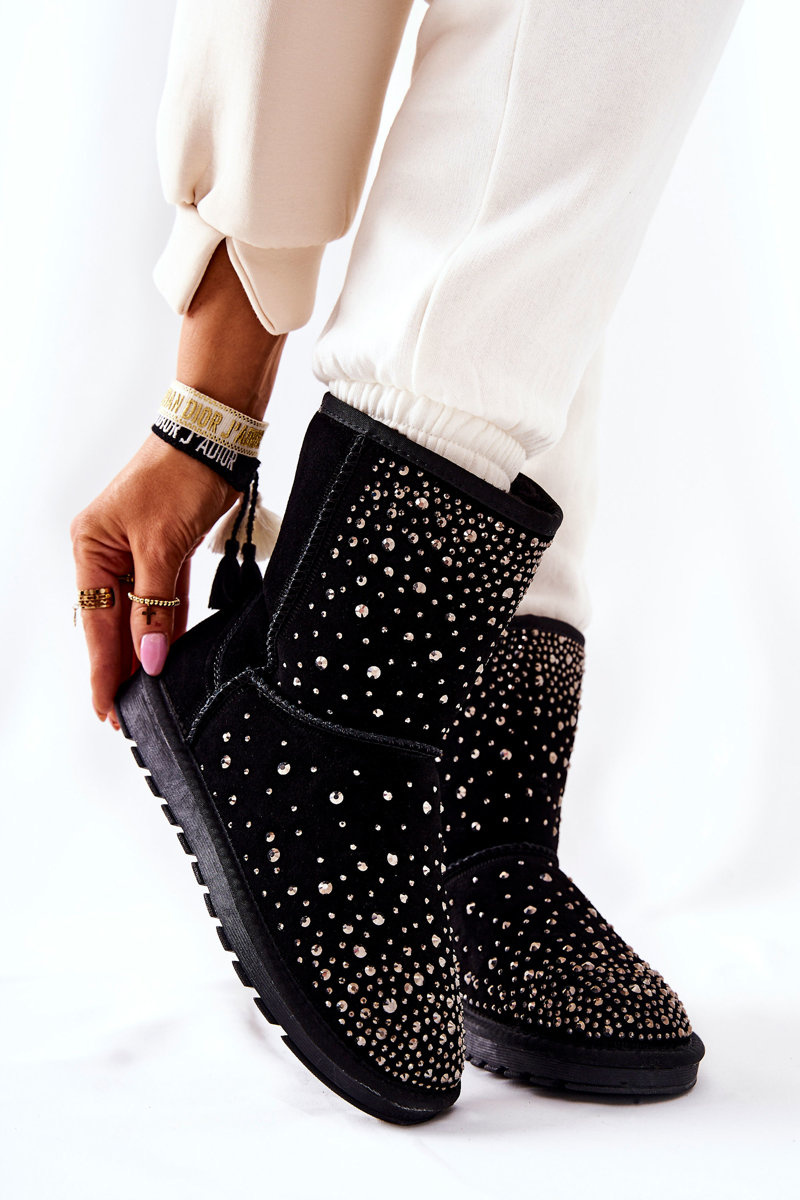 Зігріваючі снігові черевики зі стразами Чорні Mariella