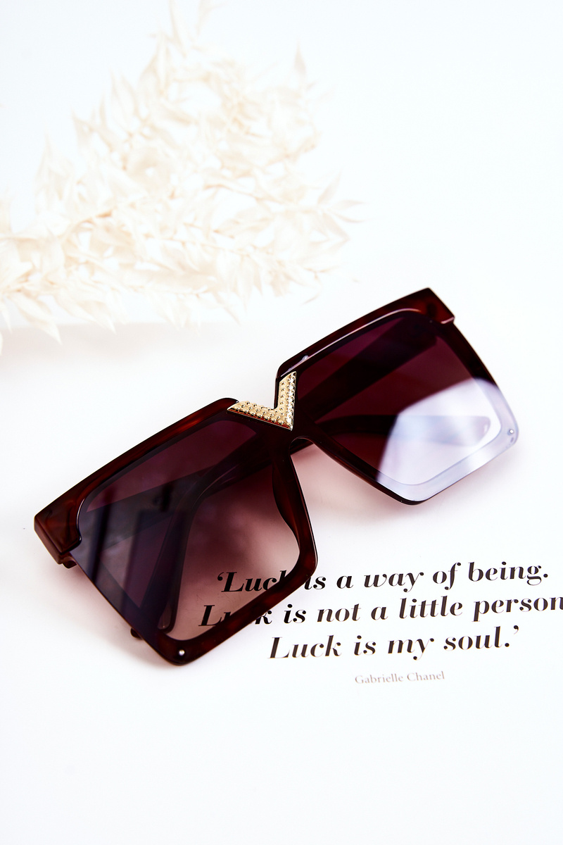 Сонцезахисні окуляри чудово підходять у багатьох ситуаціях! Не тільки в літній сезон, але і взимку, коли сонячні промені відбиваються від снігу. Квадратна модель. Виготовлений із пластику. На мосту є декоративний, золотий елемент. Верхня частина лінз має оправу. Інформація виробника: окуляри поглинають шкідливі ультрафіолетові промені, 3 категорія.