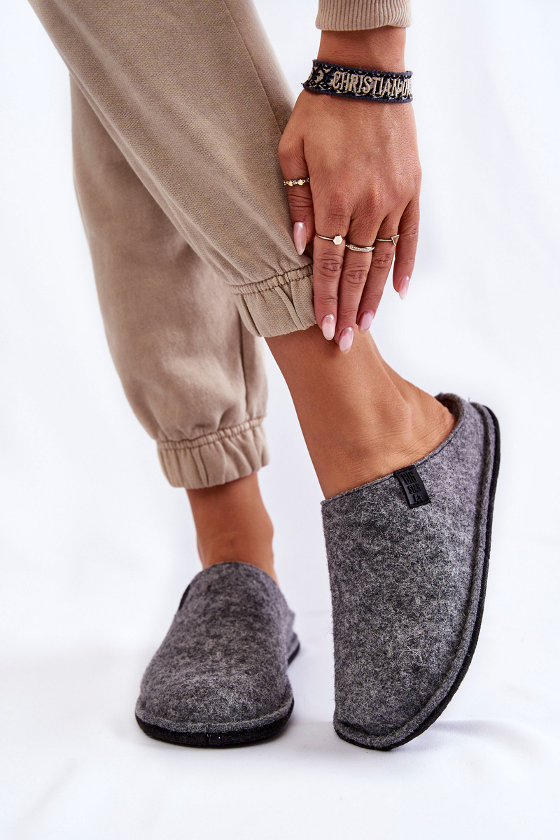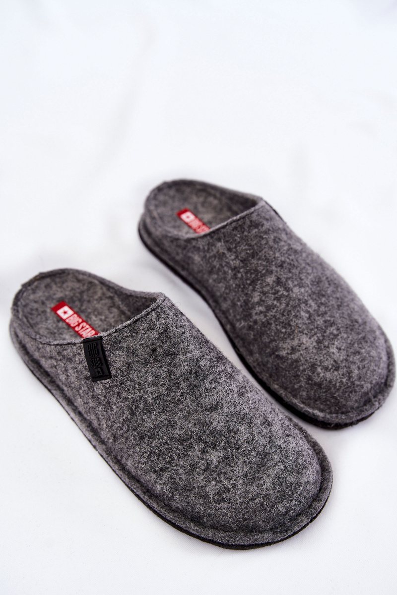 Класичні тапочки для холодних днів і вечорів. Виготовлений з вовняного фетру ззовні та всередині. Вони мають логотип Big Star. Вбудований на делікатній платформі. Широкий закритий носок забезпечить комфорт під час щоденного використання. Підошва виготовлена з високоякісних матеріалів. Ця модель має бути твоєю! При виборі розміру скористайтеся таблицею розмірів.