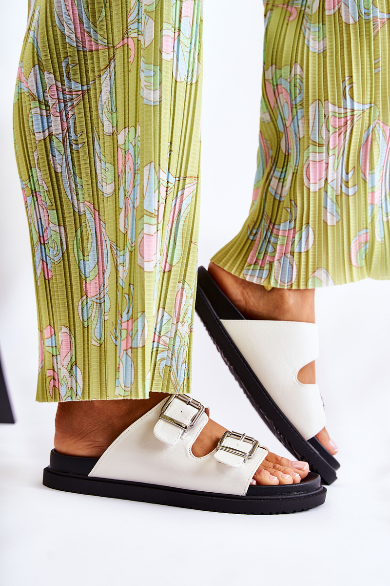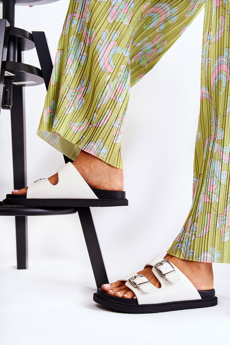 Класичні сліпони з еко шкіри. Встановлюються на плоску більш товсту підошву. Вони мають два регульованих ремінця з пряжкою спереду. Зручна профільована устілка з гумового матеріалу. Ідеально підходить для щоденного використання! Модель з відкритим заокругленим носком. Чудове взуття на літо! При виборі розміру скористайтеся таблицею розмірів.