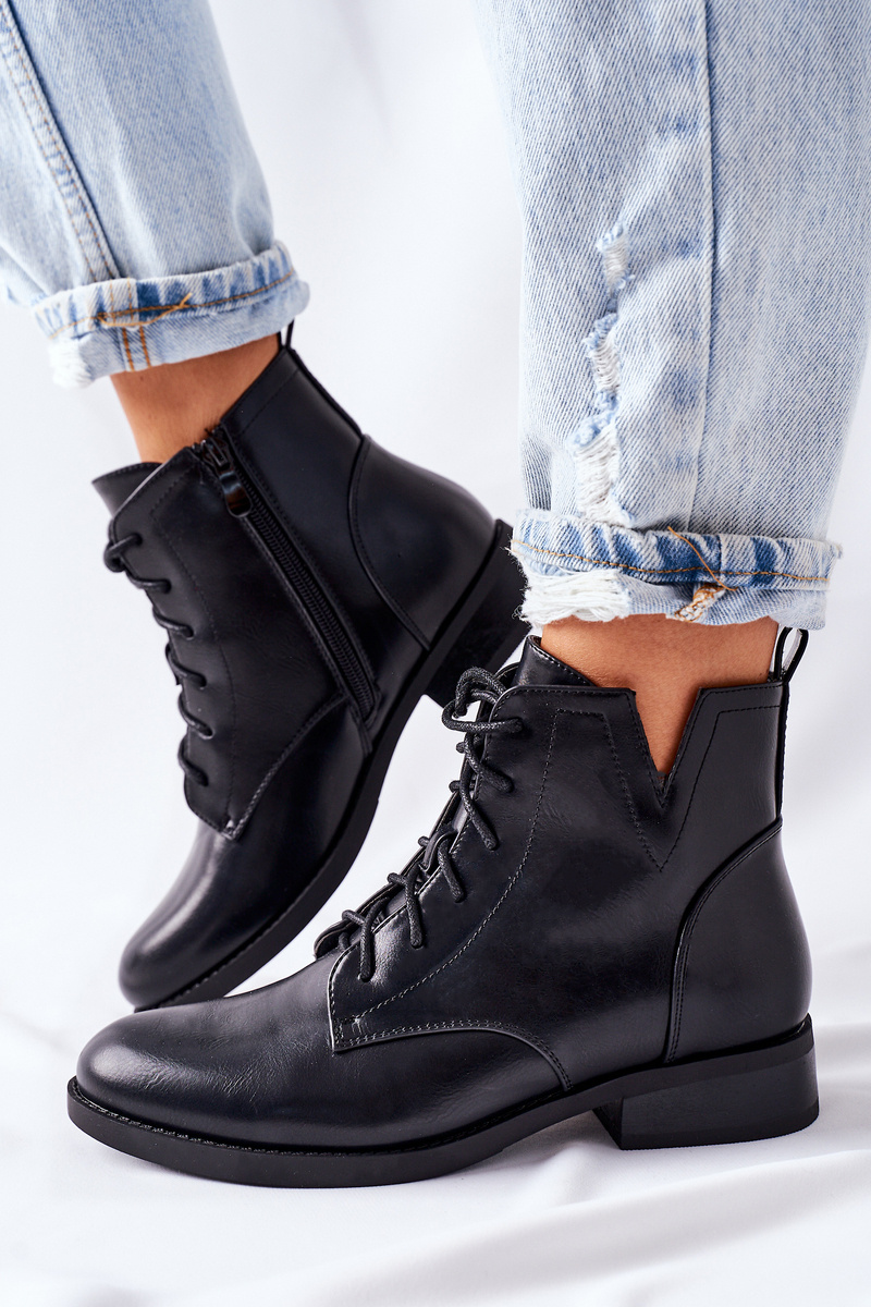 Черевики жіночі з екологічної шкіри. Збоку застібаються на блискавку. Класична модель з гладкої злегка глянсової шкіри. Повністю ізольований приємною на дотик ковдрою для взуття. <Під час вибору правильного розміру зверніться до таблиці розмірів.