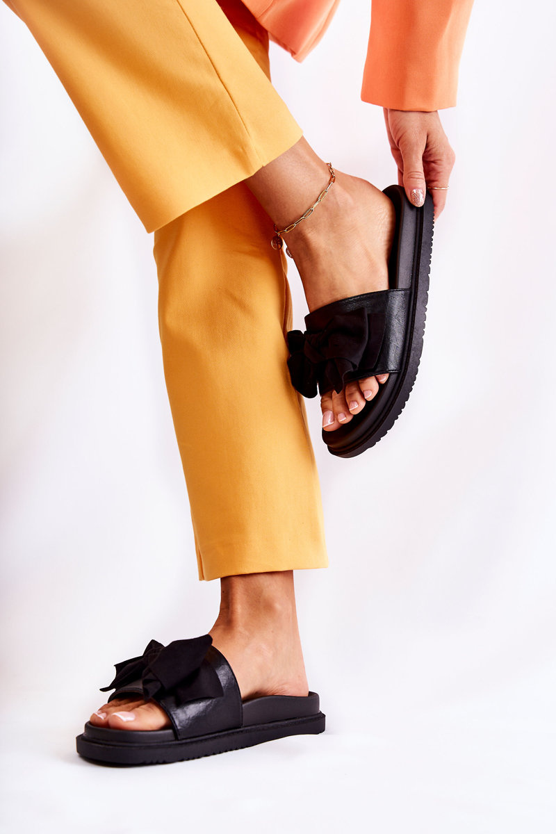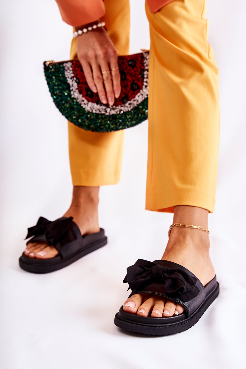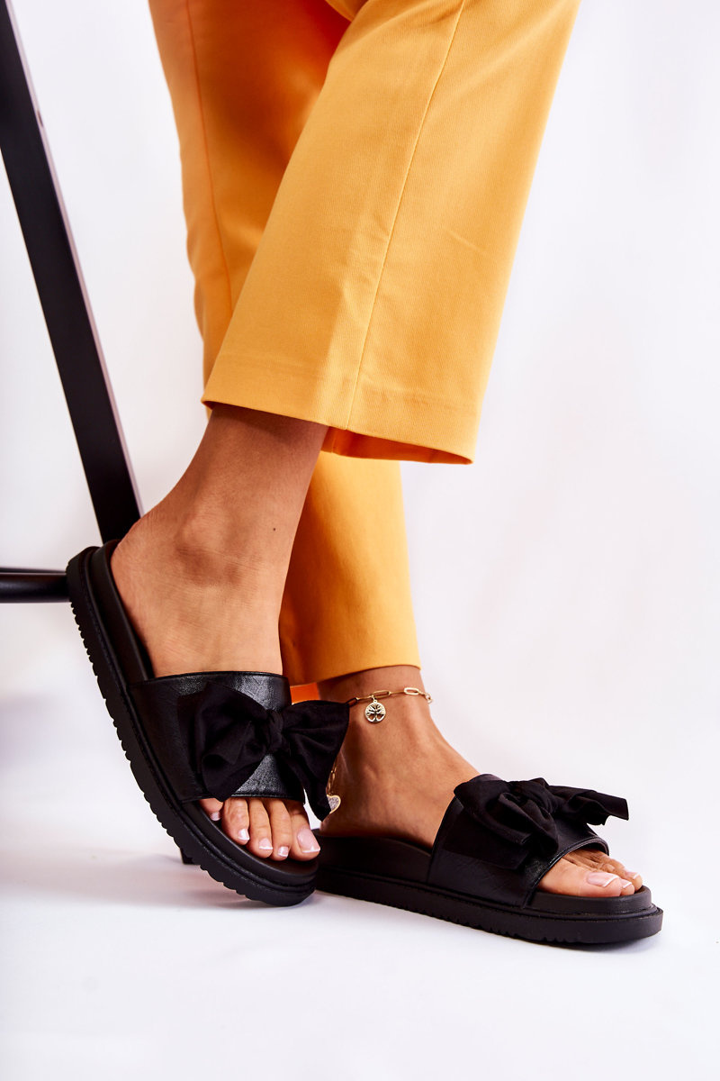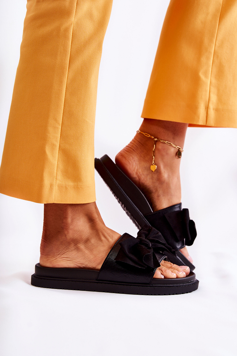 Класичні жіночі шкіряні тапочки з бантом Black Dessy