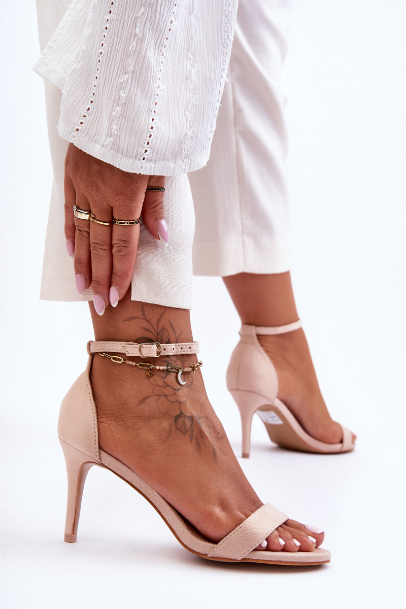 Класичні замшеві босоніжки на підборах світло-бежевого кольору Tossa