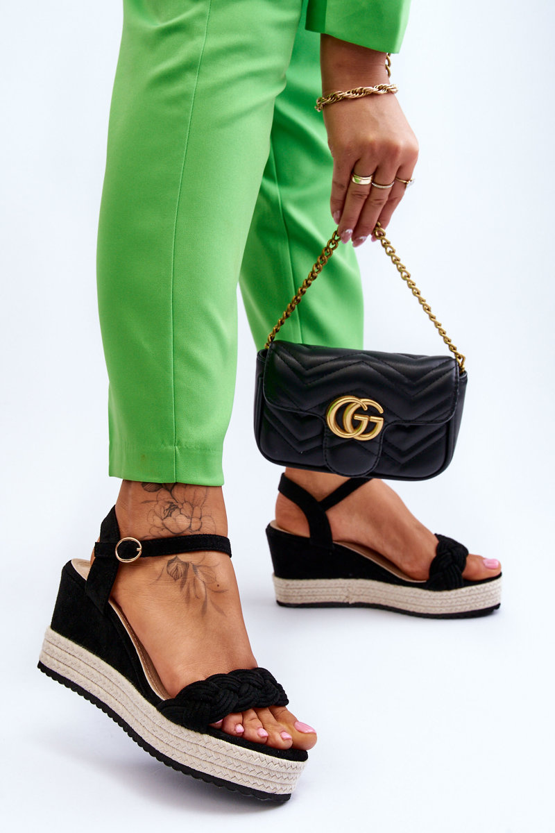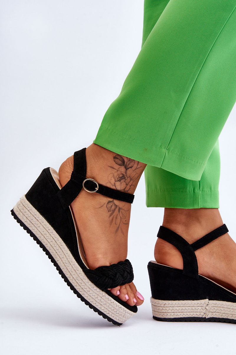 Класичні замшеві босоніжки на танкетці Black Denisse
