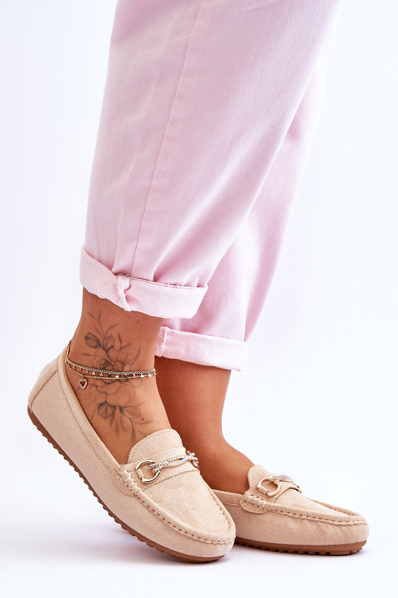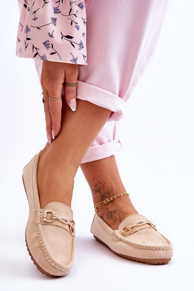 Класичні замшеві лофери з прикрасами бежеві Amera