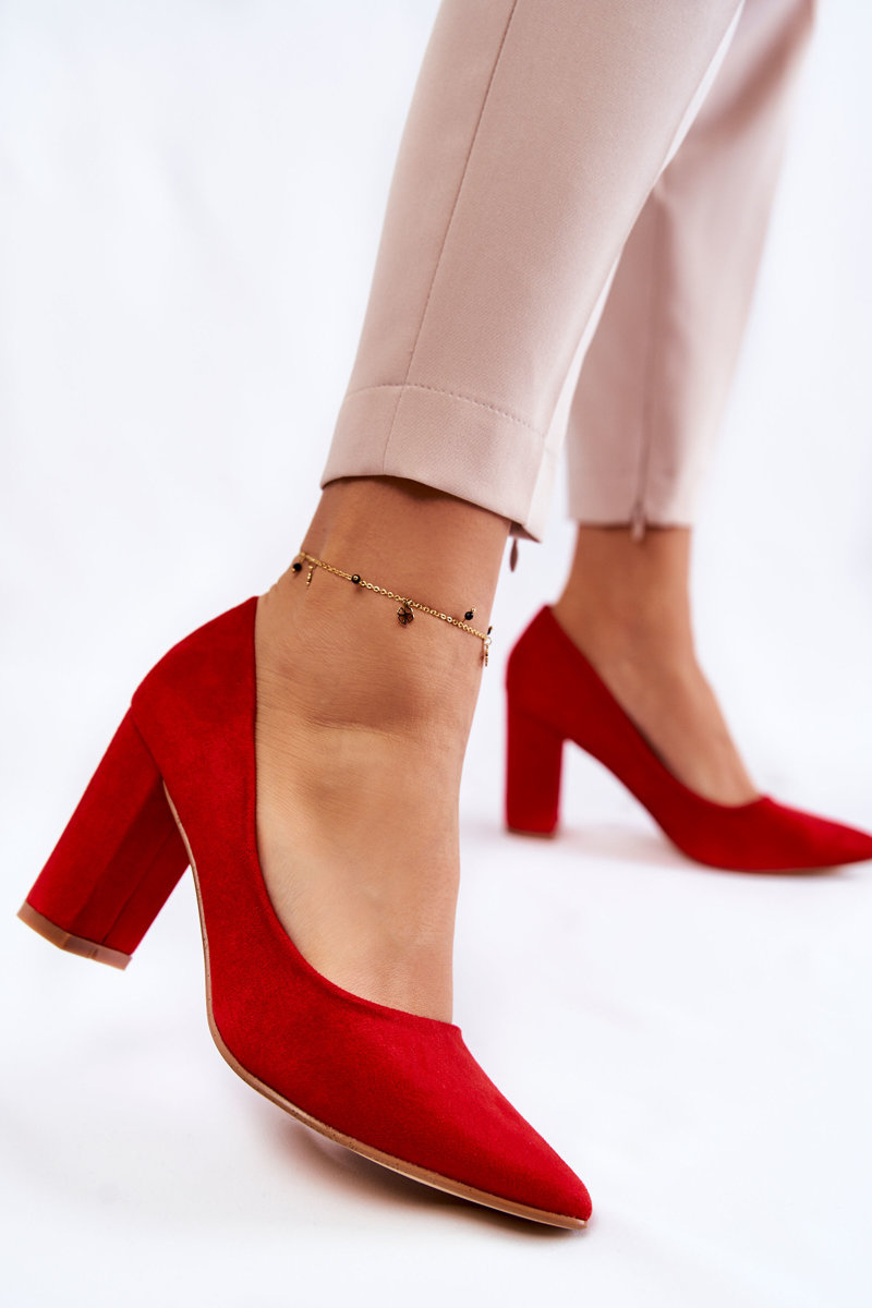 Класичні замшеві туфлі на підборах червоного кольору Kendra