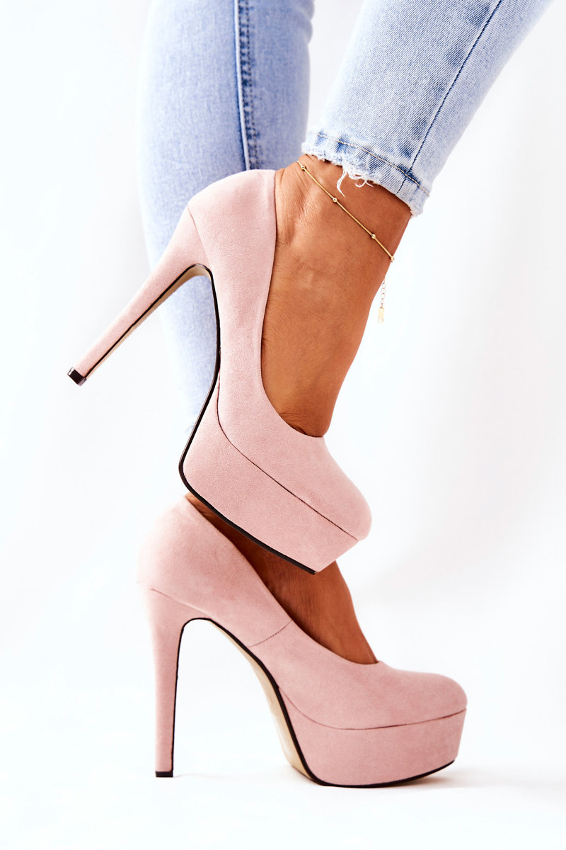 Класичні замшеві туфлі на шпильці на платформі, бежевий безглуздо