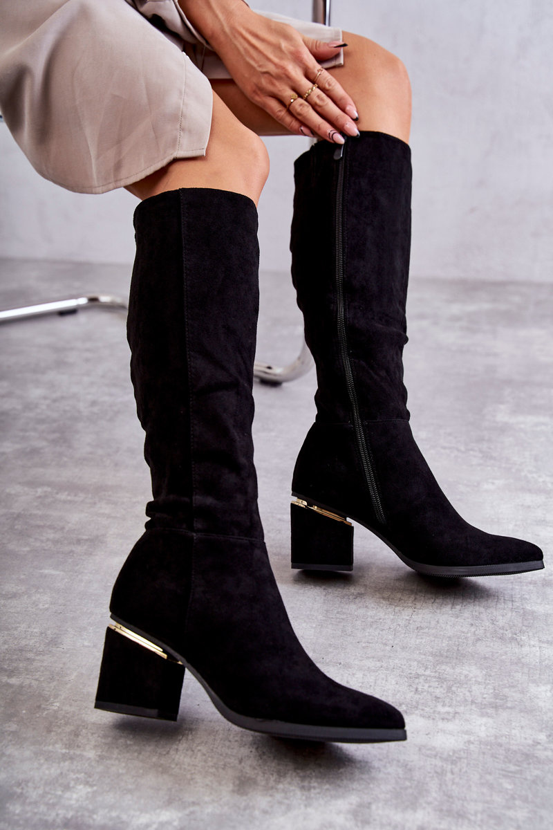 Класичні замшеві чоботи з чорною застібкою-блискавкою
