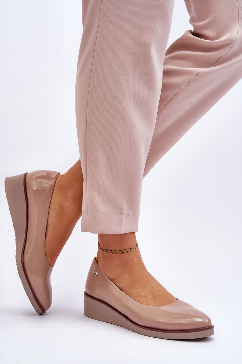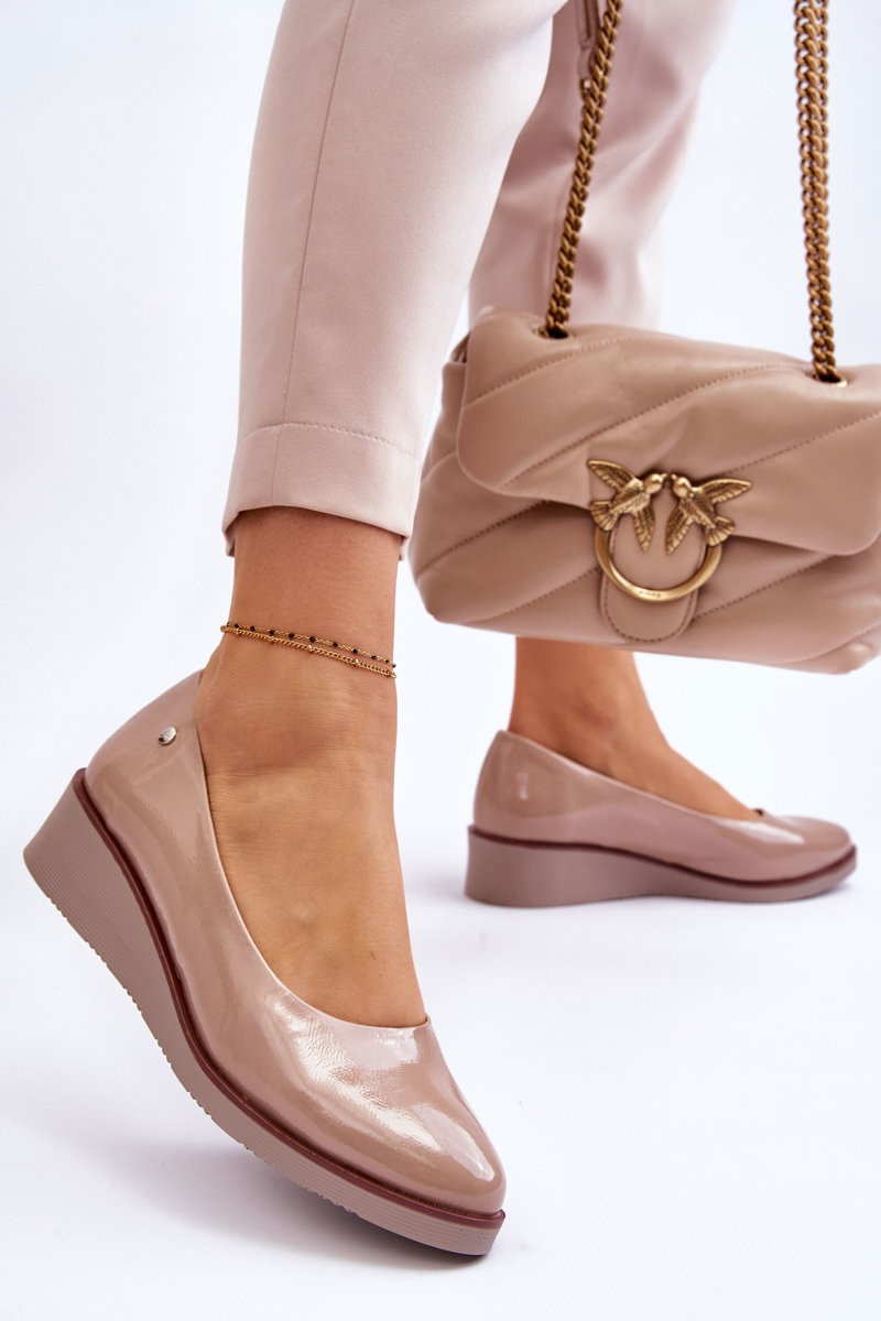 Класичні лаковані туфлі на танкетці, бежеві Paola